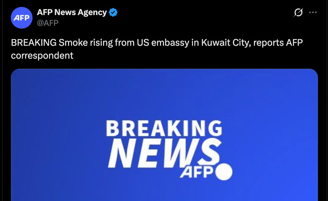8.24 Над посольством США в Кувейті здіймається дим, передає AFP.