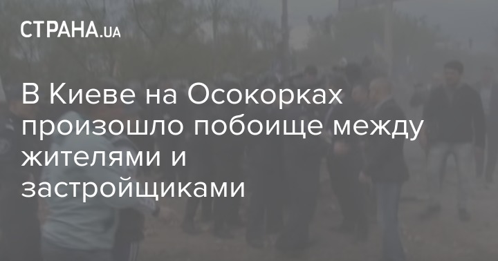 В Киеве на Позняках продолжается конфликт из-за попытки застройщика засыпать местное озеро. На место происшествия прибыло около сорока молодых людей в строительных касках и два десятка активистов, выступающих против застройки.